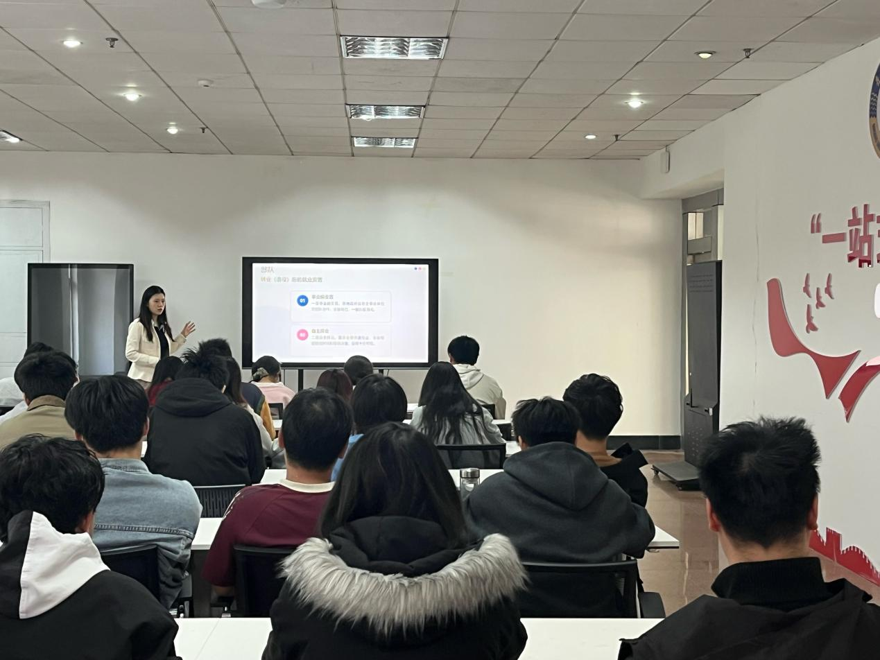 马天晨结合学生成长实际,对当前就业环境下信息类专业学生的发展选择进行了深入分析,并介绍了大厂、国企、公务员、外企、参军入伍、基层就业等不同职业的发展路径,引导同学们既要关注行业发展趋势,也要充分认识自身优势,结合个人兴趣、能力基础和职业目标,主动拓宽就业思路,理性选择适合自己的成长路径。会上,马天晨与参会学生积极交流,解答学生在求职就业、简历投递、职业选择、个人发展等方面的具体问题,马天晨强调,面对多样化的就业选择,同学们要尽早树立规划意识,在学好专业知识的基础上,不断提升实践能力、综合素质和岗位适应能力,主动关注政策信息和岗位需求,做好学业发展与职业发展统筹安排,为未来就业打下坚实基础。