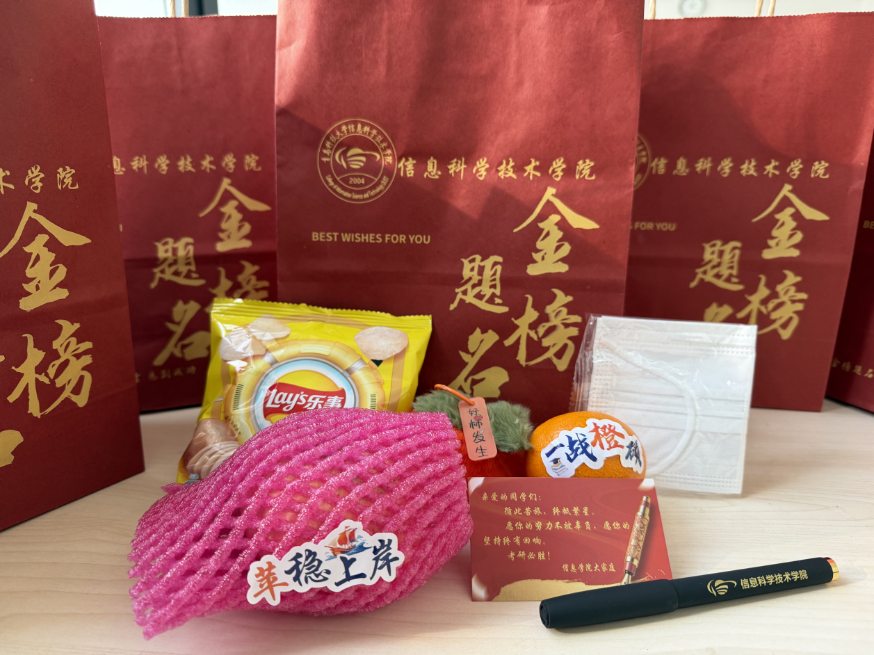 学院精心准备的“暖心加油包”满载最真挚的牵挂与期许:写有祝福语的专属卡片,让关怀精准抵达;金黄甘甜的橙子寓意“前‘橙’似锦”,为疲惫的备考注入甘甜与希望;饱满圆润的苹果寓意“苹”稳上岸,丰收“硕”果;便携口罩是学院对学子健康的细致守护;精致的柿子小挂件象征“柿柿”如意、考研顺遂;定制的碳素笔,助力学子笔下生花、落笔成硕;“乐事”薯片成为能量“加油站”,助学子暂缓压力、重振精神。