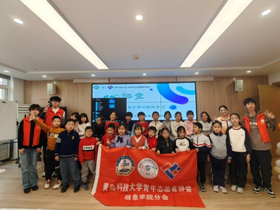 近日,青岛科技大学信息科学技术学院青衿志愿服务协会社会实践队前往青岛市崂山区东城国际社区开展“e心课堂”系列活动。实践队通过科学家精神宣讲、机器人体验和AI伴学体验,为社区青少年赋能。