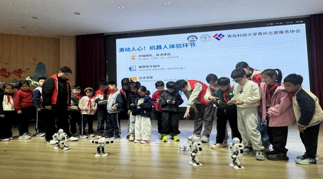 为弘扬科学家精神,普及前沿科技知识,激发青少年科学探索热情,4月7日,信息学院青衿志愿服务协会走崂山区沙子口小学,开展“科普筑梦”主题志愿服务活动。依托信息学科专业优势,志愿者们将科学家精神宣讲与机器人前沿技术体验相结合,为孩子们带来了一堂沉浸式、互动式的科学启蒙课,助力提升青少年科学素养。