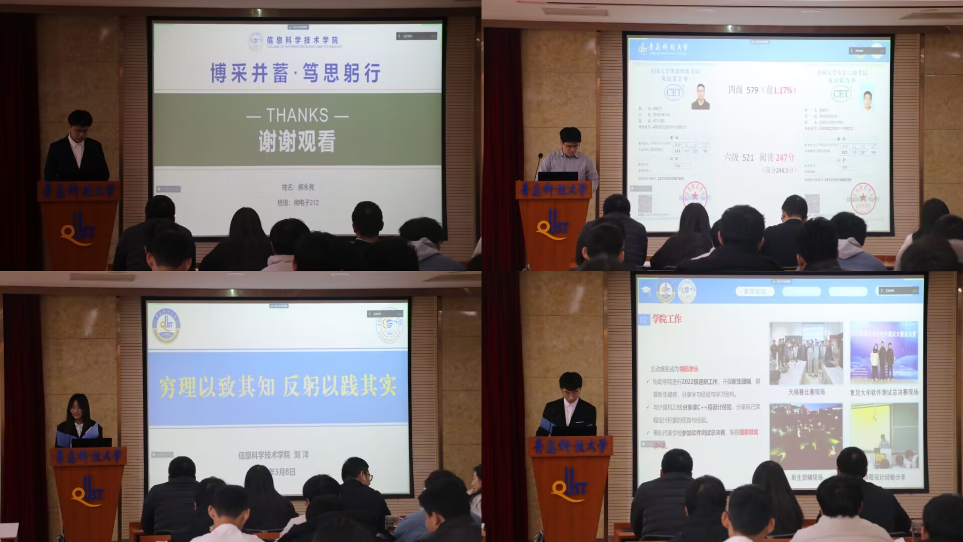 为树立大学生先进典型,进一步促进优良学风建设,信息学院于3月8日下午在402报告厅召开2024年度山东省优秀学生、优秀学生干部、先进班集体评选答辩会。学院党委副书记兼副院长严增兴及全体团委老师出席会议并担任评委,答辩会由学生刘培迪主持,100余名学生代表现场观摩。