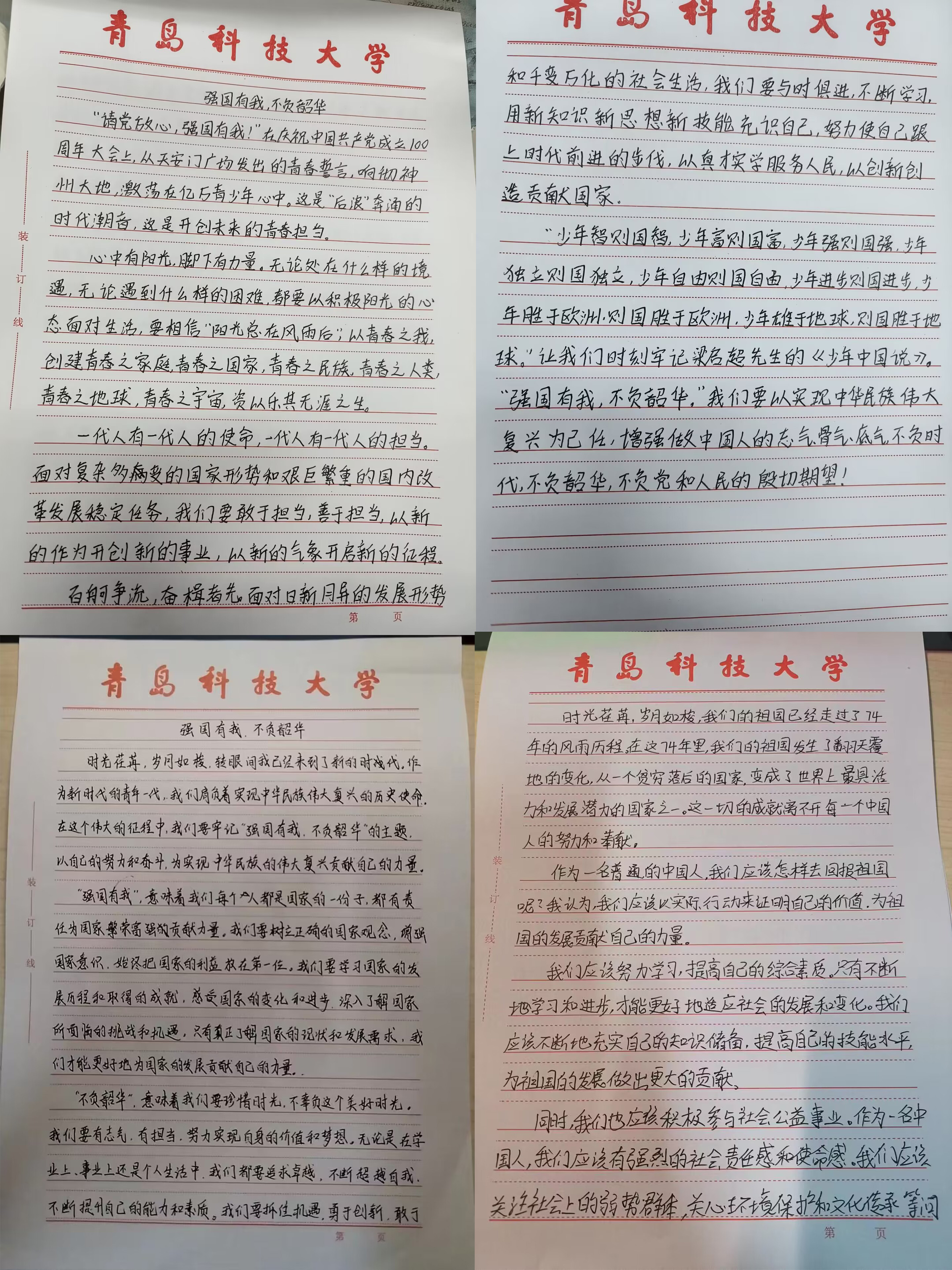 党的百年历史也是党带领人民筚路蓝缕完成独立富强的奋斗之路,“请党放心,强国有我!”的青春誓言更是激励广大青年团员追梦逐梦。团支部积极响应号召,举办“强国有我,不负韶华”主题征文活动,号召同学们结合新时代新思想,引导支部成员思考如何为实现中华民族伟大复兴而贡献自己的青春力量。同学们纷纷表示,作为青年人,首先要拿起先辈们的旗帜,爱国爱民,树立为祖国为人民永久奋斗、赤诚奉献的坚定理想。还要脚踏实地、埋头苦干,根据时代潮流和国家需要贡献青春汗水,以开拓进取精神服务社会大众,在攀登知识高峰中追求卓越。