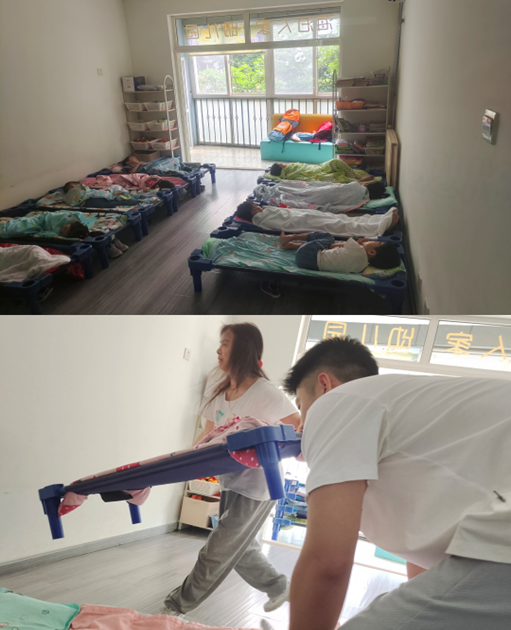 首先,他们开始了叠被子和整理物品的活动。虽然这些看似简单的活动,但对小朋友们来说却有着重要的意义。通过这些活动,他们帮助小朋友们掌握一些生活技能,也让小朋友们感受到他们的关心和爱护。
