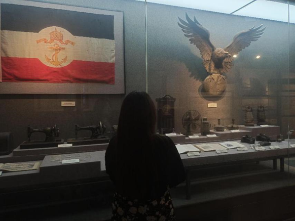 图为队员在了解胶澳属地旗帜和木雕“德意志之鹰”孙雨洁 摄