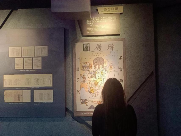 图为队员在了解当时的国家时局 孙雨洁 摄