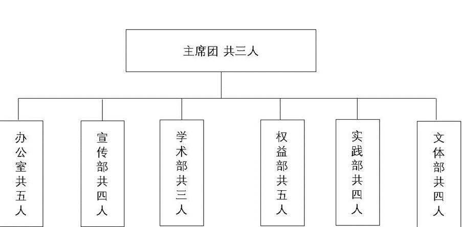 第二十九条 学生会按照“按需设置、合理优化、精简高效”的原则,设立学生会办公室、宣传部、权益部、实践部、文体部、学术部六个职能部门。原则上,各职能部门由二至四名部门负责人组成。部门负责人和各部成员人数根据各部门情况而定。