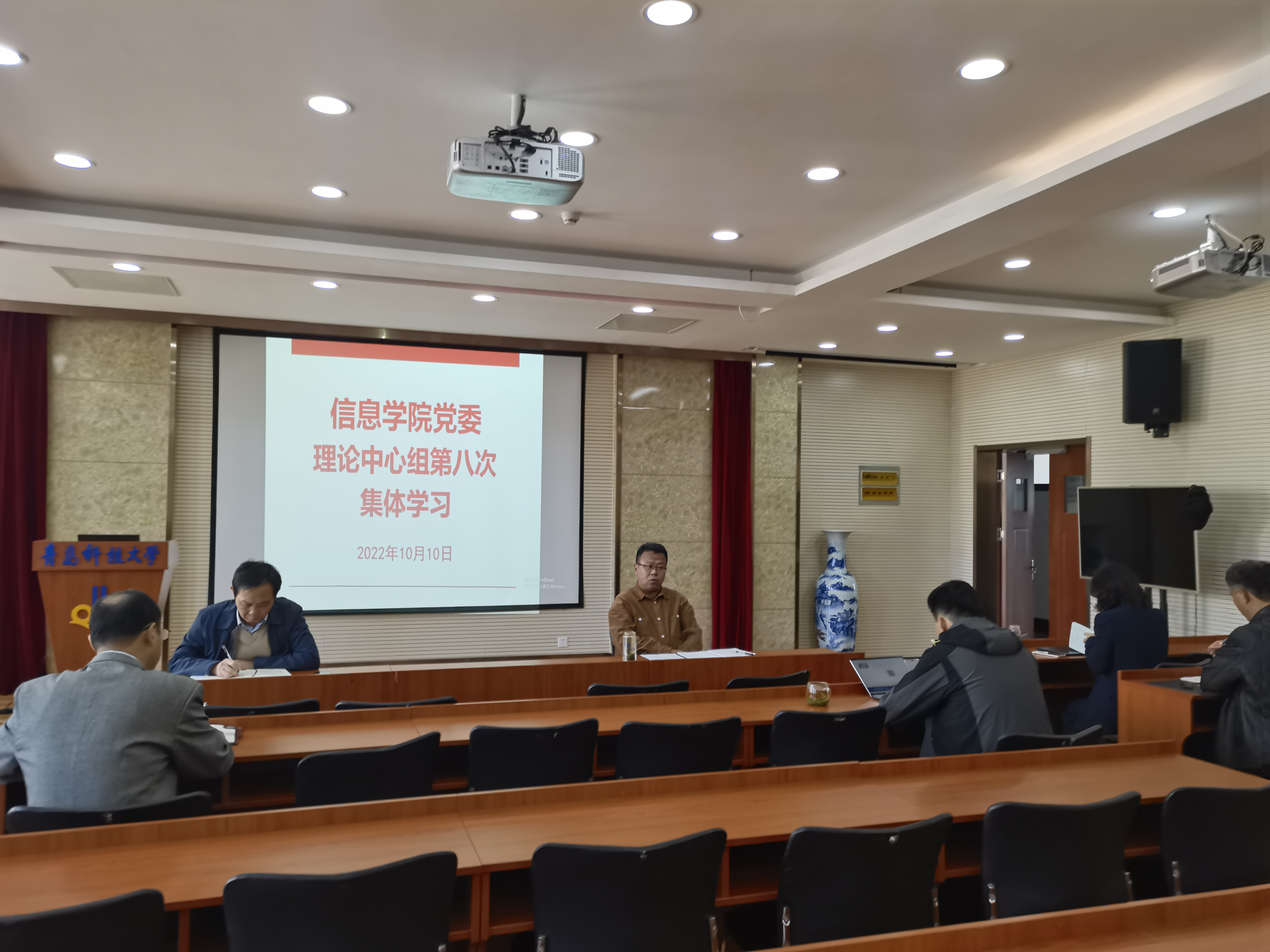 10月10日下午,信息学院党委在402会议室进行理论中心组第八次集体学习。学院理论中心组成员参加学习,院党委书记刘庆主持学习。