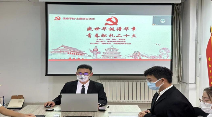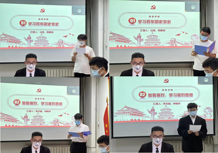 为庆祝中华人民共和国成立73周年,深入贯彻落实学习学校第十一次党代会精神,迎接党的二十大胜利召开,10月1日晚,信息学院、大数据学院举办“盛世华诞谱华章,青春献礼二十大”主题团日活动。学院各年级班级代表参加本次活动,活动采取线上线下相结合的形式,分为学习百年团史党史、致敬英烈学习英烈、重温入党誓词三部分。本次活动由刘帅同学主持。