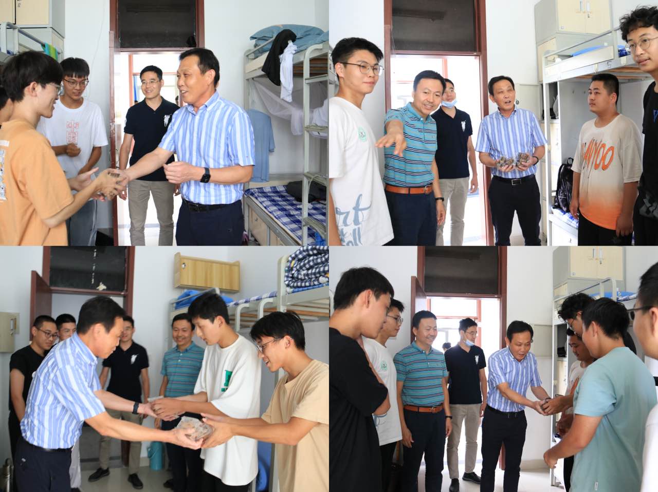 情溢中秋时,月饼承心意。9月9日上午,院长刘国柱、党委副书记兼副院长王军以及2022级辅导员老师来到宿舍,为新生送去青科专属月饼,并向同学们表达节日的祝福。学院的关心和关爱传递给每一位新生,让独自在外求学的同学们感受到了家一般的温情和暖意,有利于增强同学们对于学校的归属感,感悟“科大精神”,践行“橡胶品格”。