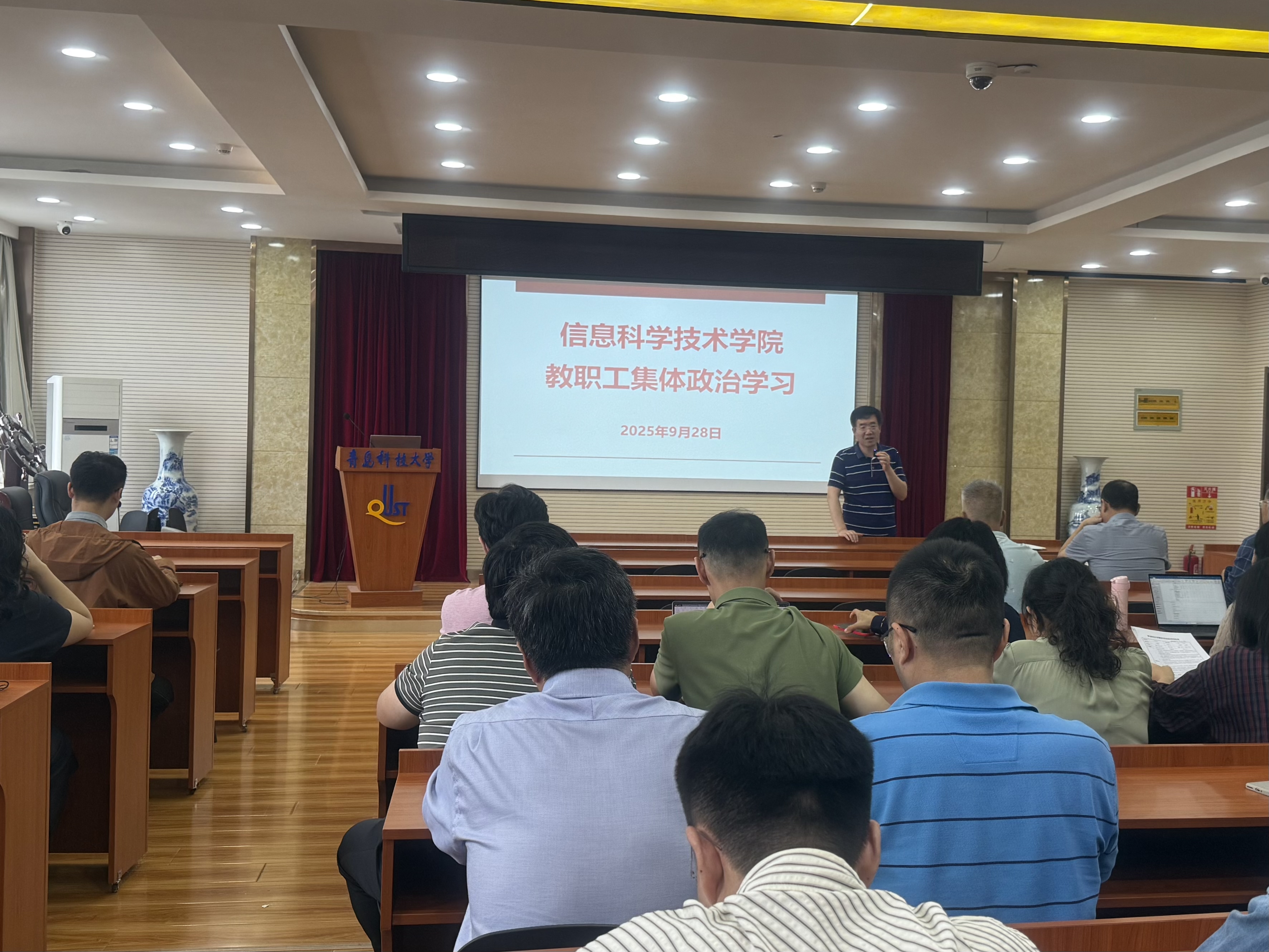 9月28日下午,信息学院党委在学院402报告厅召开教职工集体政治学习会,组织全体教师学习习近平总书记关于安全生产的重要论述精神。会议由院党委书记许桂锋主持,全体教职工参加会议。