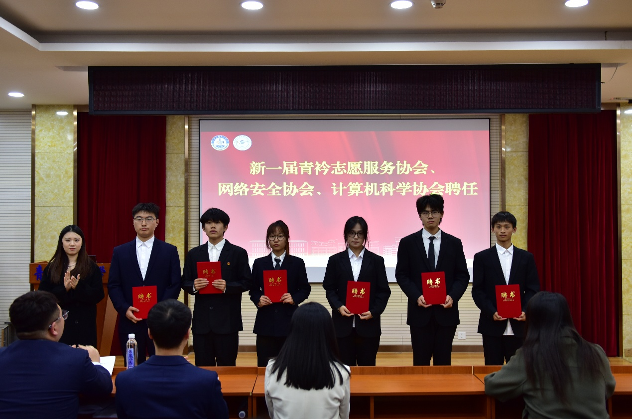 大会宣读关于新一届易班工作站、体育联盟、星火e+社会实践工作组、阳光e+心理工作站和助理委员会学生组织骨干成员聘任名单,并为学生代表颁发聘书。