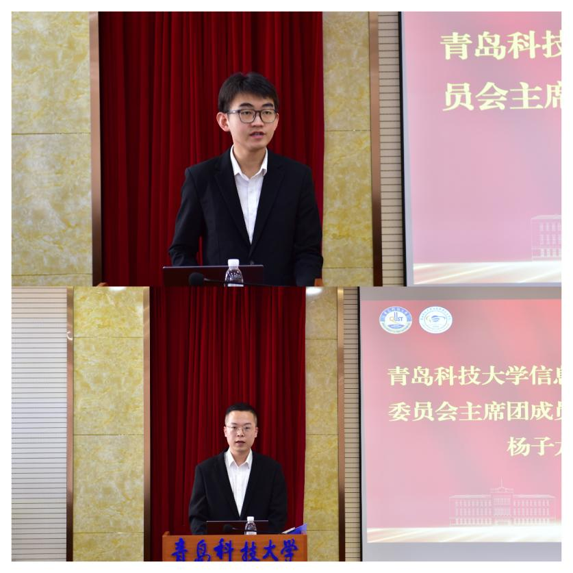 大会上,青岛科技大学校学生会代表刘雨涵、数据科学学院学生会代表庞宇轩分别致贺词。他们表示,信息学院与各兄弟学院、校学生会始终保持紧密合作,共同推动学生工作稳步向前。期待未来继续携手同行、共促发展,以坚定信念和扎实作风砥砺奋进,助力学生工作再攀新高度。随后,工作人员宣读来自各兄弟学院的贺信。贺信中,机电学院、外国语学院等兄弟学院对大会的召开表示热烈祝贺,希望两院学生深化交流、增进合作、携手前行,助力学生工作朝气蓬勃发展。
