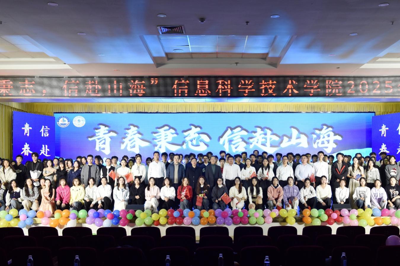 12月19日,“青春秉志,信赴山海”信息科学技术学院2025年迎新晚会暨表彰大会在崂山校区第二报告厅顺利举办。信息学院党委书记许桂锋、院长王景景、党委副书记兼副院长严增兴,副院长宋廷强、周艳平、陶冶,以及学院全体辅导员和2025级新生参加此次晚会。